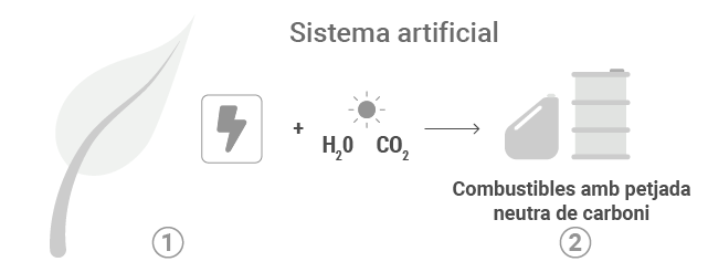 La fotosíntesi artificial ens permet obtenir combustibles de fonts renovables com aigua, diòxid de carboni i llum solar. A més, l’ús de CO2 en la producció el converteix en una solució d’emmagatzematge d’energia neutra en carboni.